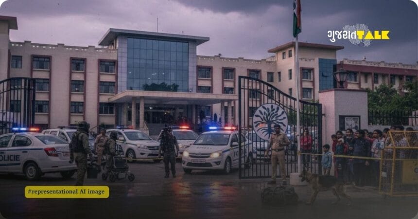 અમદાવાદ/વડોદરા: ગુજરાતના બે મુખ્ય શહેરો, અમદાવાદ અને વડોદરામાં આજે વહેલી સવારથી જ અફરાતફરીનો માહોલ સર્જાયો હતો. વિદેશી ધરતી પરથી સંચાલિત ખાલિસ્તાની આતંકવાદી સંગઠનો દ્વારા મોકલવામાં આવેલા ઇમેઇલને કારણે શૈક્ષણિક સંસ્થાઓમાં સુરક્ષા વ્યવસ્થા હચમચી ઉઠી છે. આ Bomb Threat ને પગલે હજારો વિદ્યાર્થીઓ અને વાલીઓમાં ગભરાટ ફેલાયો હતો, જોકે સદનસીબે તપાસ દરમિયાન કોઈ શંકાસ્પદ વસ્તુ મળી આવી નથી.